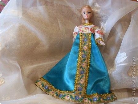 Я живу в Зауралье, недалеко от Уральских гор, где добывали изумруды и малахиты. Уральские девушки одевались в темно-зеленые сарафаны, украшенные золотой тесьмой. Поэтому я сшила уральский народный костюм.